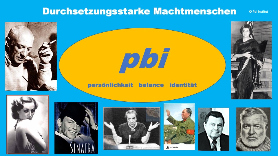 Auf dieser Seite werden Bilderserien in den Kategorien 'Bilder mit einem Twist', Persönlichkeit(sbildung), Ideenkiste, Schnipsel, Umgang mit Egozentrikern, Manager kann jeder und 'Das PbI Institut stellt sich vor' präsentiert und laufend ergänzt. Für das Umschalten in den Präsentationsmodus ist ein Desktop oder ein iPad hilfreich.